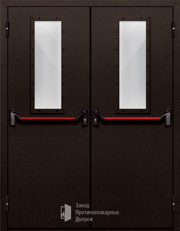 Маркировка Противопожарная Двупольная дверь с прямоугольным стеклом ДПМ-02-EIW60 с антипаникой