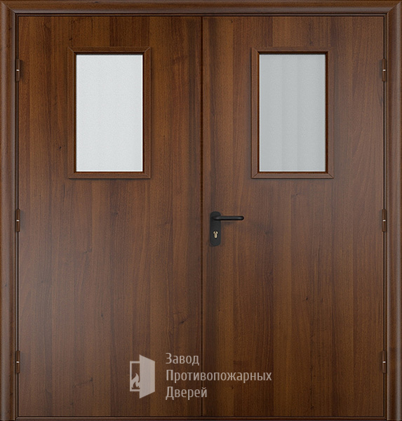 Маркировка Противопожарная Двупольная дверь МДФ с прямоугольным стеклом ДПМ-02-EIW60