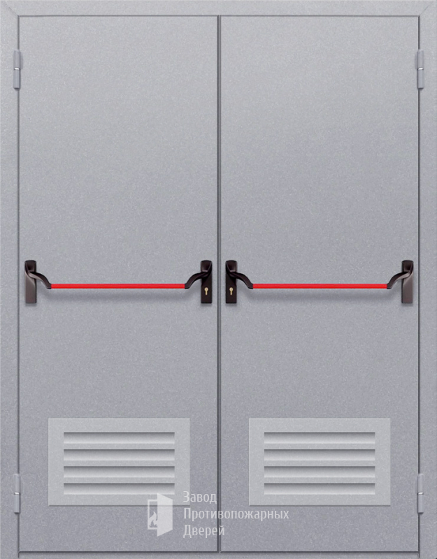 Противопожарная Двупольная глухая дверь ДПМ-02-EI60 с решеткой и антипаникой |