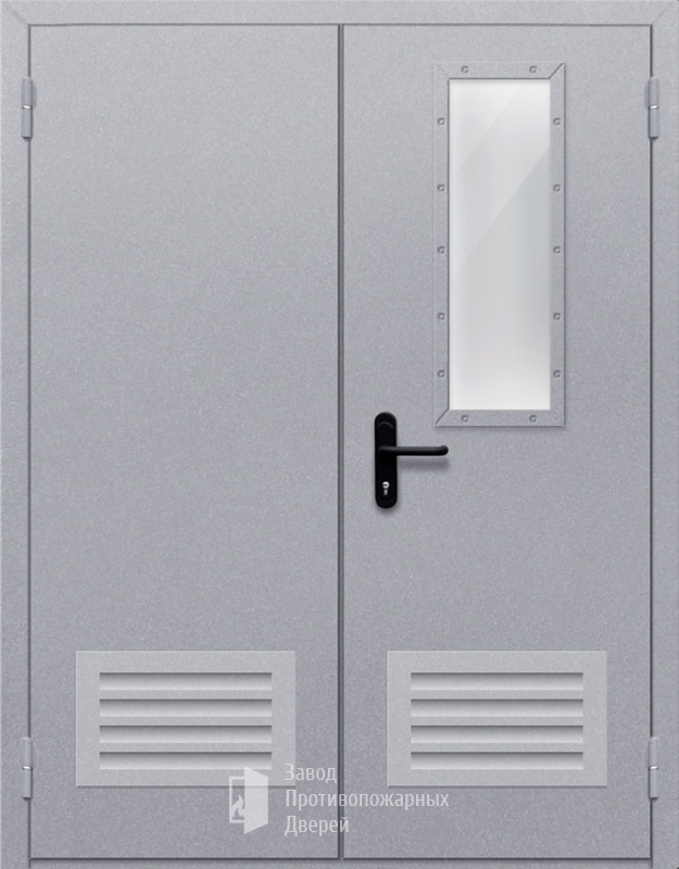 Маркировка Противопожарная Двупольная дверь с прямоугольным стеклом ДПМ-02-EIW60 с решеткой