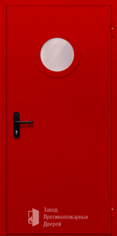 Модель Противопожарная дверь однопольная с круглым стеклом красная