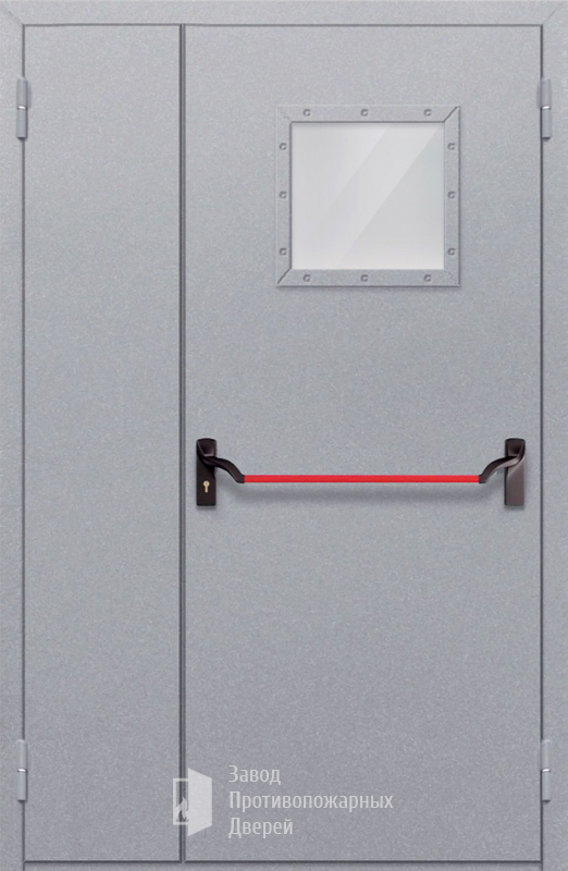 Маркировка Противопожарная Полуторная дверь с квадратным стеклом ДПМ-02-EIW60 с антипаникой